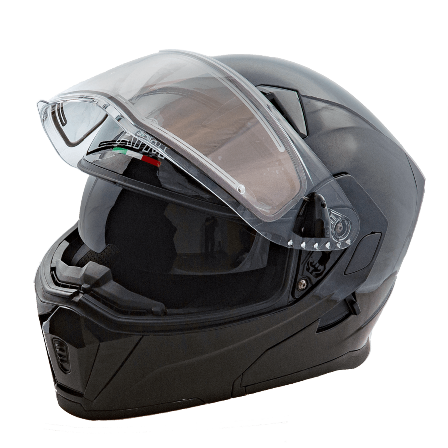 • Двойной с подогревом, быстросъемный, с защитой от царапин и ультрафиолета, не замерзает и не запотевает при отрицательных температурах. Обеспечивает идеальный обзор при любых погодных условиях.