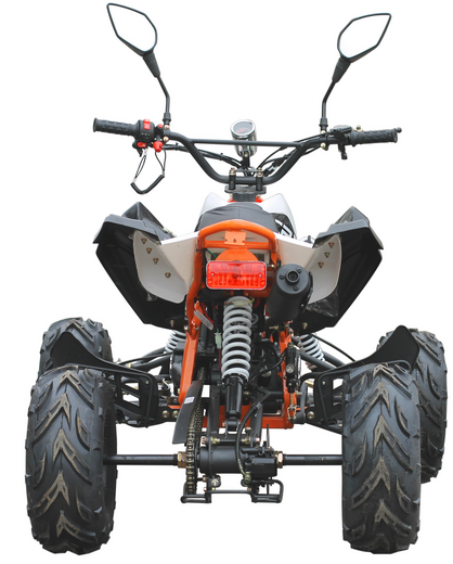 Бензиновый квадроцикл MOTAX ATV T-Rex-LUX 125 сс подойдет для отдыха за городом, на даче, в сельской местности. Ему нужно много места, чтобы показать, на что он способен. Родителям не следует беспокоиться за безопасность ребенка – производитель оснастил внедорожник необходимыми защитными мерами: сигнализацией с автозапуском, пультом дистанционного управления с возможностью заглушить двигатель в пределе 100 м, ограничителем скорости до 5-10 км/ч. Быструю остановку обеспечит надежная тормозная система (барабанные тормоза спереди и ножные дисковые – сзади). Главное, чтобы ребенок катался в шлеме и под контролем. Дополнительно мотовездеход оснащен светодиодными фарами и стоп-сигналами, зеркалами заднего вида, спидометром, передним отбойником. Это самый большой квадроцикл среди аналогов!ДАННАЯ МОДЕЛЬ ПОСТАВЛЯЕТСЯ БЕЗ ПТС