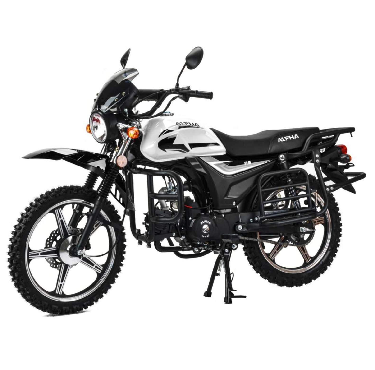 ALPHA FORESTER RS 11 - более богатая комплектация мопеда ALPHA RS. На ALPHA FORESTER RS в комплектации предусмотрены защитные дуги, передний багажник, дополнительные складывающиеся железные дуги-подножки пассажира, которые можно использовать для перевозки дополнительного груза.FORESTER RS идентичен базовой версии в технической части - четырехтактный 110 кубовый двигатель с 4-х ступенчатой механической коробкой передач, электростартер. Этот мопед идеально подойдет для практичных людей, желающих увезти побольше груза.