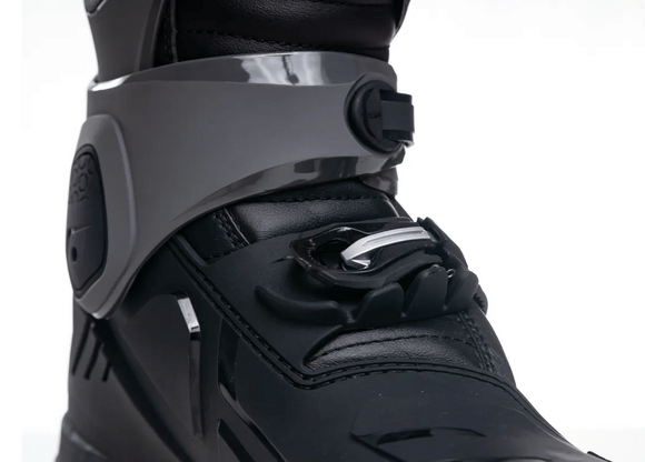 :Описание продукта::Это многофункциональные внедорожные мотоциклетные ботинки с продуманной системой защиты, которая позволяет легко справляться с растяжениями и компрессионными травмами. Они обеспечивают бесстрашную езду независимо от дорожных условий, а их продуманный дизайн гарантирует безопасность и удовольствие от езды. : ::Структура продукта: : ::• Защитная конструкция из ТПУ, охватывающая большеберцовую кость, обеспечивает поглощение ударов на 360 , повышая защитные возможности щитка для голени. :::• Влагоотводящая и дышащая подкладка обеспечивает сухость и комфорт ног в течение длительного времени. :::• Соответствует стандарту CE (EN 13634:2017) для защитной обуви для мотоциклистов, что обеспечивает надёжную защиту во время поездок. :::• Пятка и голеностопная часть обуви имеют эластичную складчатую конструкцию, обеспечивающую свободу движений и удобную посадку без сдавливания. :::• Четырёхступенчатая быстросъёмная пряжка для удобства ношения и плотного прилегания к ноге. :::• Композитная система управления сцеплением с поверхностью обеспечивает надежное сцепление, позволяя без труда преодолевать сложные участки местности и справляться с погодными условиями. : ::Многонаправленная защита TPU::Защита суставов::Сертифицированный CE::Регулируемая пряжка::Удобно и уютно::Дизайн с отворотом на верхней части::Предотвращает чрезмерное сгибание::Резиновая подошва::Встроенный стальной сердечник для усиленной поддержки, износостойкости и противоскользящих свойств::Удобная подкладка::Протектор с логотипом спереди на голени::Усиленная прокладка::Система стабилизации голеностопного сустава::Стабилизирует и поддерживает стопу: