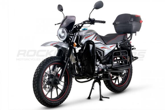 ROCKOT QUEST 150 - новый, дорожный мотоцикл от компании ROCKOT-MOTORS, с большим потенциалом на длительные поездки, независимо от типа дорожного покрытия. Благодаря своим компактным размерам, короткой колесной базе, мотоцикл отлично чувствует себя в городской среде с большим объемом дорожного трафика. Максимальная скорость ROCKOT QUEST 150 - до 92 км/ч на стандартных приводных звездах. Масса мотоцикла -126 килограмм, но при небольшой высоте по седлу в 820 мм и низкому центру тяжести, он ощущается достаточно легким.Мотоцикл имеет ЭПТС, оснащен цветной электронной панелью приборов, зеркалами, всей необходимой светотехникой, что позволяет законно передвигаться по дорогам общего пользования. ДизайнМотоцикл построен в классическом исполнении, но имеет множество современных, технологичных решений.Все световые приборы - светодиодные и очень яркие. Передняя фара имеет круглую классическую форму, но стоит ее включить, как мотоцикл обретает совершенно другой вид.Цветовая гамма модели имеет три варианта окраски: бело-красный, черный и серый.Конечно же, бросается в глаза оснащение мотоцикла туристической багажной системой. На заднем багажнике установлен жесткий центральный кофр. Откидные боковые багажники, позволяют перевозить объемный груз, а также устанавливать боковые багажные сумки. Глядя на мотоцикл, складывается впечатление, что все его пространство использовано максимально практично. Даже в дугах безопасности встроены дополнительные багажные карманы.Топливная системаВ основе топливной системы ROCKOT QUEST 150 - большой топливный бак объемом 12 литров. В зависимости от условий эксплуатации и стиля езды, расход топлива варьируется в районе 3-3,5 литров на 100 километров. Это позволяет преодолевать большие расстояния на одном баке бензина. Используемый тип топлива - бензин АИ-92. Образует топливную смесь - карбюратор PZ27 с ускорительным насосом. Ускорительный насос исключает момент “провала” при резком открытии дроссельной заслонки.Тормозная системаПо канонам классического мотоциклостроения, ROCKOT QUEST 150 имеет комбинированную тормозную систему. Спереди установлен дисковый гидравлический тормоз, с двухпоршневым суппортом, яркого красного цвета. Задний тормоз - механический, барабанный.Кому подойдет ROCKOT QUEST 150Мотоцикл будет очень полезен новичкам. Его небольшие габаритные размеры, низкий центр тяжести, малая высота по седлу - позволяют быстро освоить технику управления мотоциклом как в условиях города, так и бездорожья. С практичной точки зрения, мотоцикл понравится любителям выезжать на отдых за город. Отличная туристическая подготовка, позволит перевозить все, что Вам может потребоваться во время отдыха.Благодаря заложенной надежности в конструкцию двигателя и мотоцикла - ROCKOT QUEST 150 оценит старшее поколение, для кого требуется простая и надежная техника.