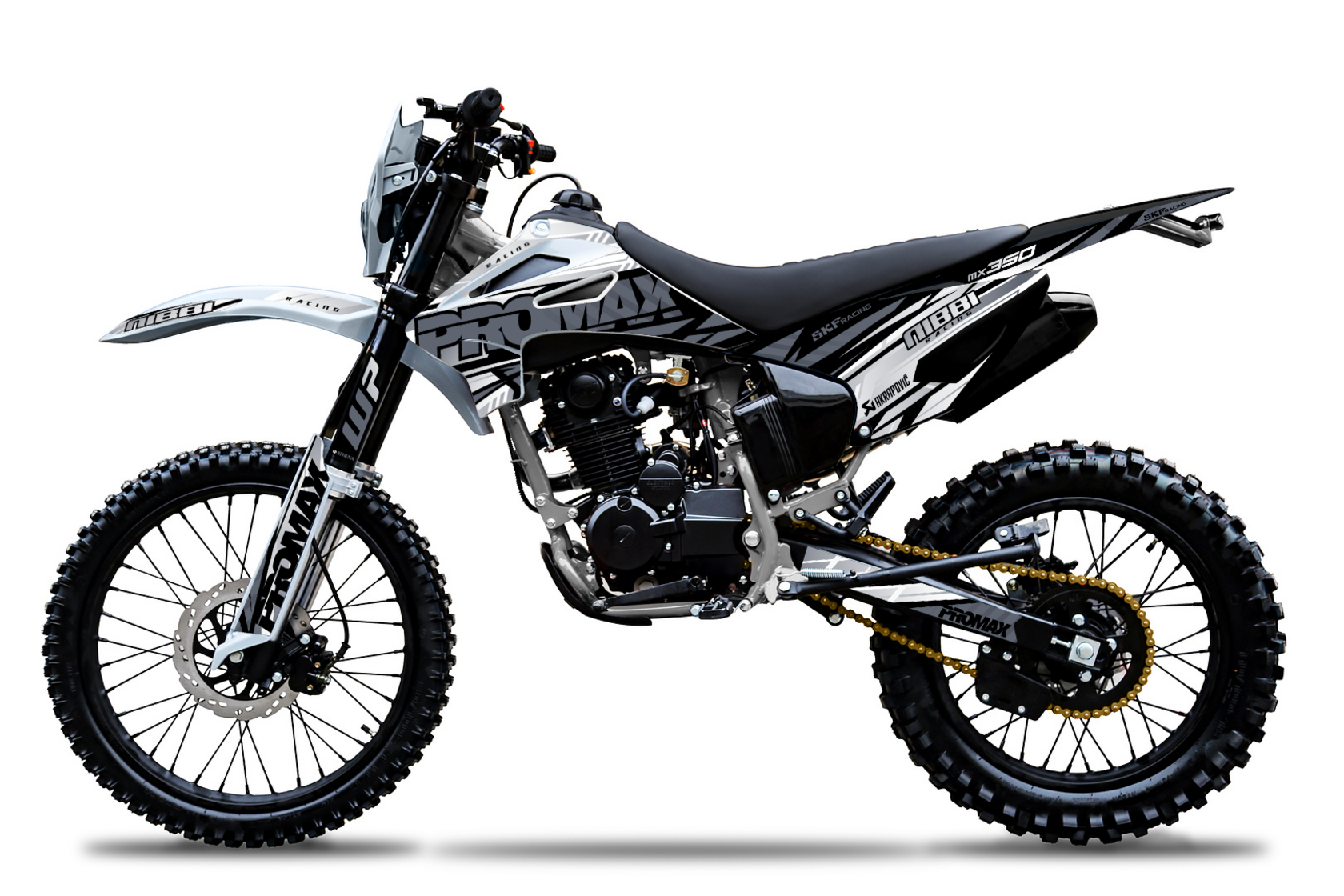 Тайваньский бренд, покоривший европейские страны, неустанно завоевывает рынок России, доказывая, что качество не означает высокий ценник! Для подтверждения своих слов – бренд дает гарантию 3 года на свою технику.Все мотоциклы PROMAX имеют Европейский сертификат качества. Применяются влагозащищенные разъемы проводки. Все подшипники обработаны специальной консистентной смазкой. «Quality in detail» (“Качество в мелочах”) - слоган компании PROMAX.ДвигательНовая модель PROMAX MX350 2024 модельного года для тех кто хочет больше! Больше скорости! Больше мощи! Больше адреналина! Встречайте PROMAX MX350 – покорителя бездорожья ! PROMAX MX280 - это выбор как продвинутых новичков, так и опытных райдеров. Мощный и надежный двигатель ZS 175FMM с воздушным охлаждением и 5-ступенчатой трансмиссией в паре со спортивным карбюратором Nibbi PZ30 и выхлопом Akrapovic Exhaust System гарантируют приятный выхлоп, стабильную работу и мощность 27 л.с. Рычаг сцепления имеет флажок для легкого выжима сцепления и правильного положения троса для максимального комфорта и полного контроля работы двигателя.Рама изготовлена с упором на надежность и долгий срок службы. Все узлы тщательно проварены, есть дополнительные усиления. На раму установлен пластиковый каркас, который защищает мотоботы и раму. Алюминиевый маятник KTM для сбалансированного веса и большей прочности.Спортивные колеса 21/18Алюминиевые обода от бренда Unison, сделанные из сплава 6065, соединены с фрезерованной ступицей 4мм спицами! Покрышки Kenda, благодаря мягкому составу, отлично держат сцепление с покрытием летом, а зимой выдерживают вкручивание шипов!Тормоза ANJIEДвухпоршневой суппорт спереди и однопоршневой сзади от производителя тормозных систем ANJIE, в сочетании с колодками, изготовленными из керамического материала, обеспечивают высокий коэффициент трения и эффективность торможения даже при высоких температурах дисков. Сами же диски толщиной 4мм – гарантия безопасности и плавной остановки.Сиденье PROMAXФирменное нескользящее сиденье PROMAX, выполненное по технологии anti-slip grip, держит любого райдера как суперклей: специальное ребристое водонепроницаемое покрытие позволяет чувствовать себя комфортно в любых погодных условиях.Электронная приборная панельМногофункциональная приборная панель со спидометром, тахометром, одометром, индикатором передач и заряда батареи. Влагозащитные разъемы подключения приборной панели, блоков управления и кнопок старт/стоп.Полностью диодная оптикаКороткоходная ручка газаРучка газа с коротким ходом от Nibbi Racing – пожалуй лучшее решение на подъемах и труднопроходимых участках. Нет нужды перехватывать ручку для получения большей мощности, достаточно подобрать необходимое усилие кисти и получить результат, оптимальный для стиля езды райдера!Приводная цепь ChohoЦепь Choho отличается от других большим запасом прочности, благодаря уплотнительному кольцу удерживающему смазку внутри и не пускающему пыль снаружи, предотвращая растяжение и низким уровнем шума – идеальное сочетание для тех, кто хочет как можно реже обслуживать технику и как можно больше эмоций получить!ПодвескаПодвеска WP, с диаметром пера в 41 мм, в заводской форме обладает широчайшими возможностями настройки, которых не представит ни один конкурент! При помощи внешних регуляторов и легко настраиваются прямо на трассе. Диапазон их настроек т