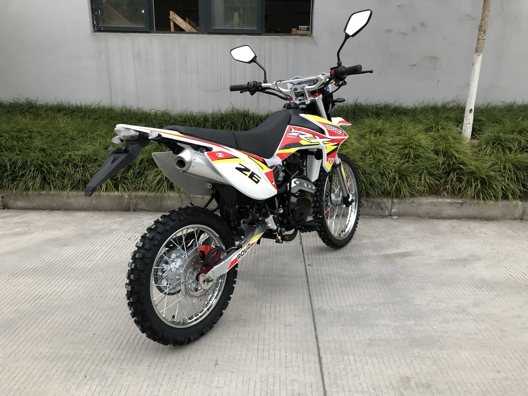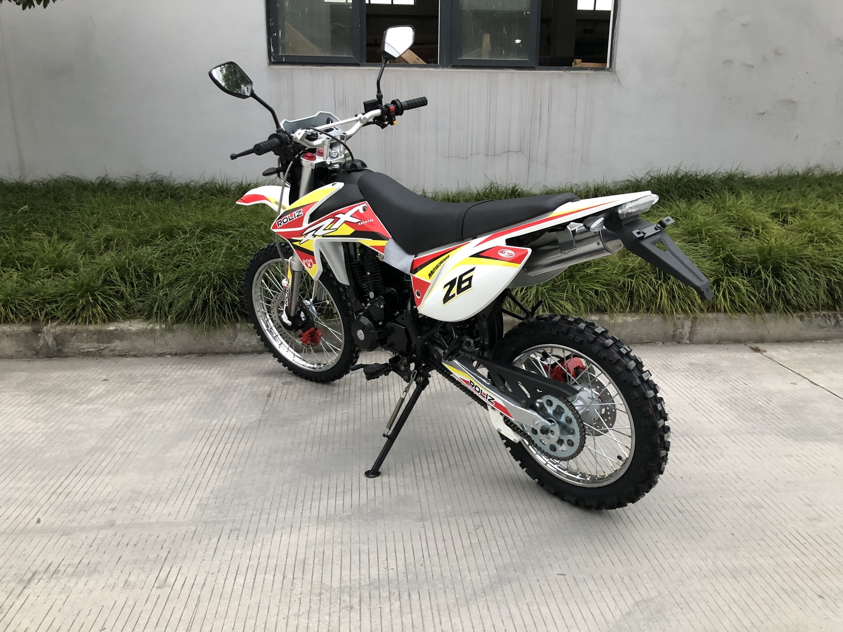 Эконика ASTERIX – новый внедорожный мотоцикл. Его стоимость значительно ниже брендовых моделей со схожими характеристиками, но качество сборки в целом, как и отдельных деталей, отличное. В стальной раме с баком 5,7 литров установлен четырехтактный одноцилиндровый двигатель 150сс с механической коробкой передач и воздушным охлаждением. Для удобства запуска мотора предусмотрен электростартер.Мотоцикл оснащен фарой головного света, что является необходимым условием для езды в сумерках и темноте, и LED указатели поворота. У нас Вы можете купить этот мотоцикл с бесплатной доставкой по РФ и гарантией до года. Также его можно приобрести в рассрочку или в кредит.