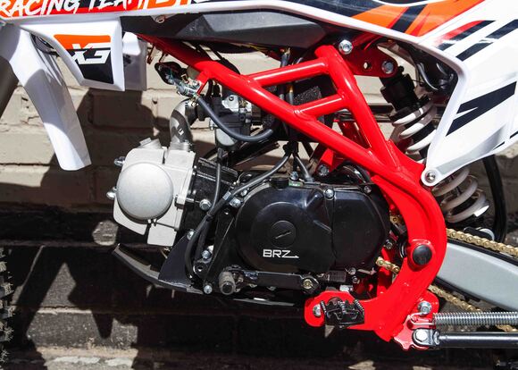 Питбайк BRZ Z4 YX150 17/14 подойдет для райдеров с ростом от 150 см. на механической N-1-2-3-4 КПП ,с электростартером и фарой.Характеристики:Кубатура – 140cc
