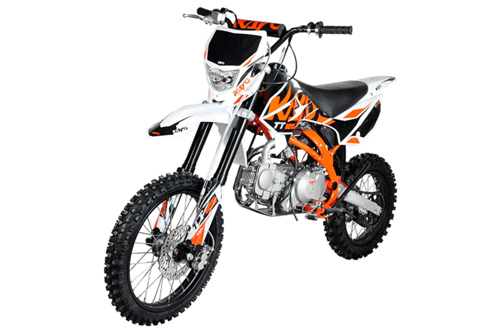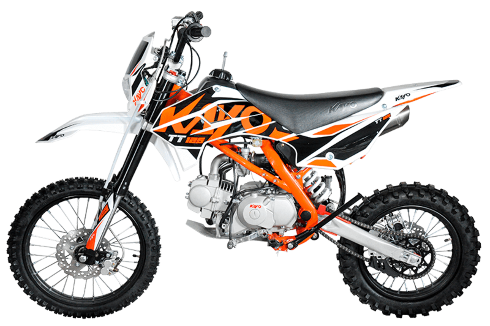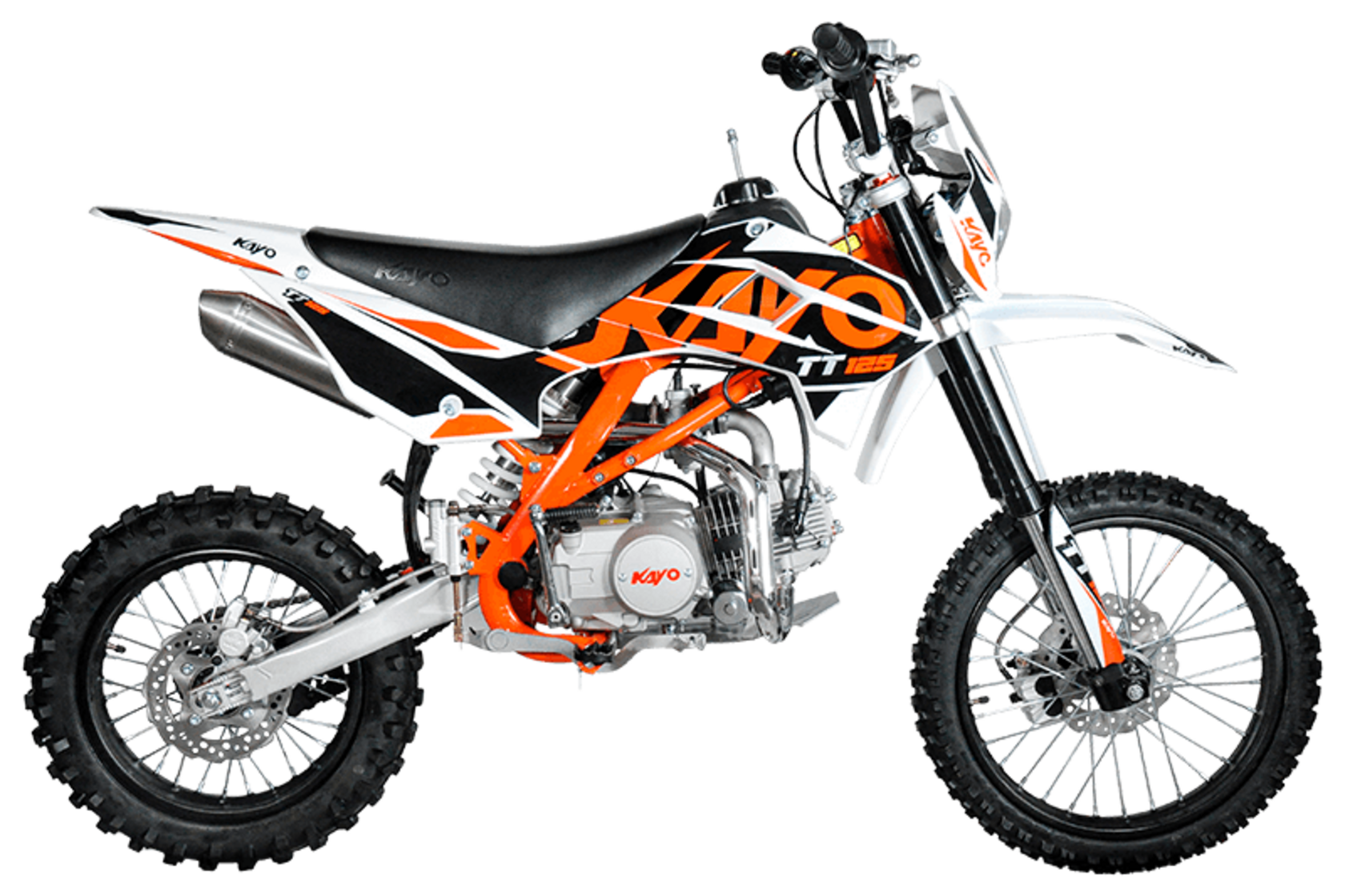 Модельная линейка KAYO в 2022 году включает в себя три разновидности классических питбайков с колесами 17/14 в комплектации Kayo Basic 125: питбайк с механическим сцеплением и кикстартером KAYO Basic TT125, питбайк с полуавтоматической трансмиссией и электростартером KAYO Basic TT125EA, и питбайк с механическим сцеплением и электростартером - KAYO Basic TT125EM . Все они зиждятся на раме, известной по более ранним комплектациям Evolution, что предполагает чуть более высокую посадку пилота. Высота по седлу 885 мм. Удобнее всего управлять этими машинами райдерам с ростом от 155 до 170 см. Комплектация Kayo Basic 125EA является в этом мотосемействе самой удобной для полных новичков, которые уже готовы катать, но еще не готовы отвлекаться от управления на осваивание механической коробки передач. В помощь новичкам и электростартер, которым оборудованы питбайки этой модификации.