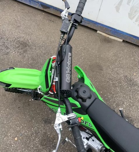 Питбайк GS Motors S12 17/14 идеален для поездок по грунтовым дорогам и бездорожью. Хорошо чувствует себя на мягком и среднем грунте. Питбайк прост в управлении и не требует специального ухода, подойдёт как новичкам, так и любителям мотокросса.Конструкция подчёркивает неуступчивый спортивный характер, который не остановится ни перед одним препятствием. Пластик комбинированный, прочный, не ломается при сгибании.Передняя подвеска — телескопическая нерегулируемая вилка перевёрнутого типа, которая отлично подходит для преодоления ям, ухабов и других неровностей плохих дорог или их отсутствия. Задняя подвеска маятниковая с моноамортизатором. Руль 22 мм с высоким подъёмом и перекладиной удобен для мотоциклистов разного роста.Питбайк весит всего 75 кг, выдерживает вес до 90 кг. Оснащён CNC траверсами, рама полудуплексная стальная, мотоцепь качественная. Колёса спицованные, металлические. Размер заднего колеса — 14 дюймов, переднего — 17 дюйм. Тормоза дисковые, передний тормозной суппорт двухпоршневой, задний — однопоршневой.Питбайк оснащён карбюратором JINGKI и одноцилиндровым четырёхтактным двигателем с воздушным охлаждением. Надёжный мотор 1P54FMI мощностью 8 л. с. и объемом 125 см³ разгоняет питбайк до 90 км/ч. Коробка передач механическая, четырёхступенчатая. Система зажигания электронная (CDI). Запуска двигателя - кикстартер.Покрышки с шипами и высоким грунтозацепом идеальны для бездорожья. Мощность мотора и небольшой вес питбайка позволяют ему преодолевать значительные препятствия и непролазную грязь, хорошо заходить в подъёмы.Питбайк относится к недорогим моделям, которые при должной эксплуатации работают без сбоев. Неприхотлив в обслуживании, не занимает много места в гараже. При необходимости в нём легко сменить любую повреждённую деталь.