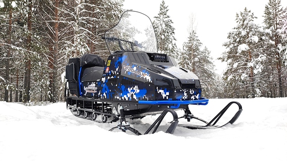 * Совокупная площадь гусениц длиной 3686,5 мм обеспечивает увеличение площади опоры на поверхность (снег, грунт), что повышает проходимость снегохода при движении по глубокому и рыхлому снегу и позволяет увеличить грузоподъемность саней до 500 кг.
