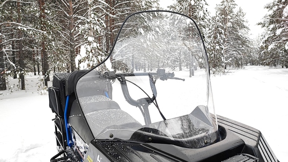 * Отдельная гордость производителя, система рулевого управления. Снегоход имеет меньший угол разворота в сравнении аналогами Буран и Мороз, а также на много более легкое управление, благодаря запатентованной рулевой системе.