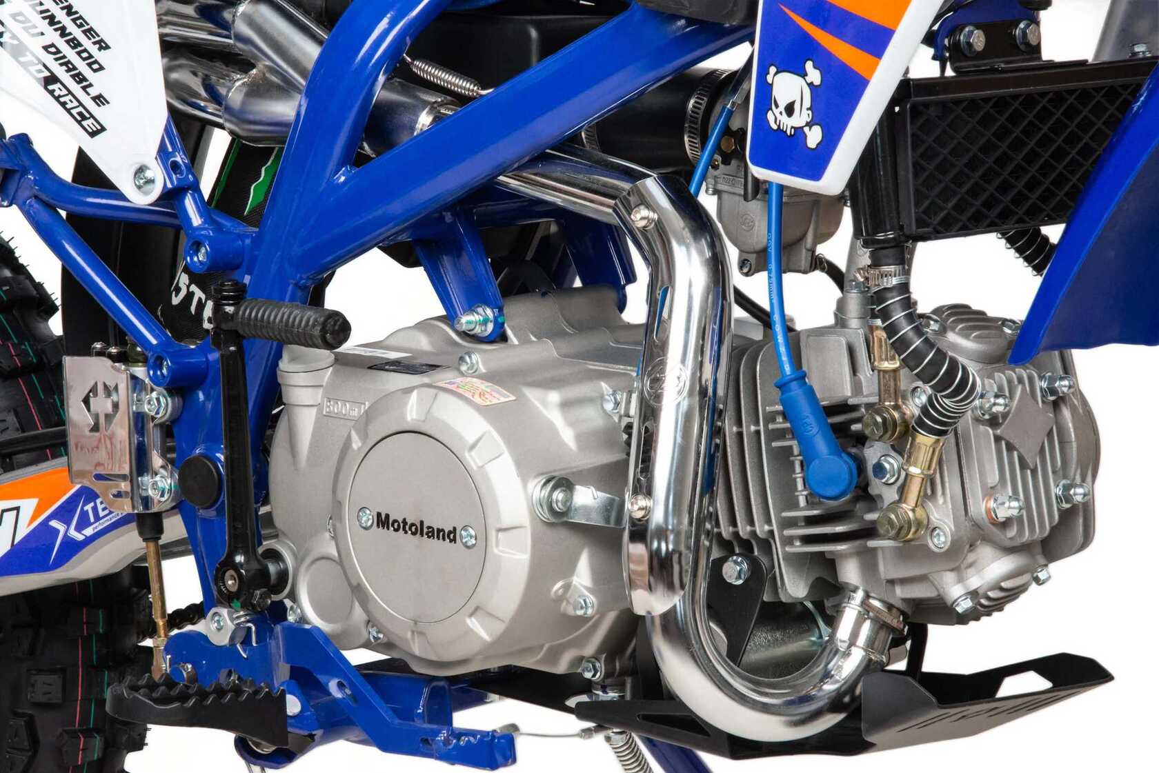 Встречайте долгожданную новинку SX на 140 куб. Питбайк Motoland SX 140 E 19/16 идеален для поездок по грунтовым дорогам и бездорожью. Хорошо чувствует себя на мягком и среднем грунте, разгоняется до 90 км/ч. Оснащён спортивными траверсами и амортизаторами с регулировкой. весит всего 75 кг.Питбайк прост в управлении и не требует специального ухода, подойдёт как новичкам, так и любителям мотокросса.У питбайка отличный узнаваемый дизайн. Конструкция подчёркивает неуступчивый спортивный характер, который не остановится ни перед одним препятствием.Комбинированный прочный пластик не ломается при сгибании.Передняя подвеска — телескопическая вилка перевёрнутого типа с регулировками, которая отлично подходит для преодоления ям, и других неровностей плохих дорог или их отсутствия. Задняя подвеска маятниковая с моноамортизатором тоже с регулировкой.Питбайк оснащён карбюратором NIBBI PE 22 и одноцилиндровым четырёхтактным двигателем с воздушно-масляным охлаждением. Надёжный мотор 156 FMJ